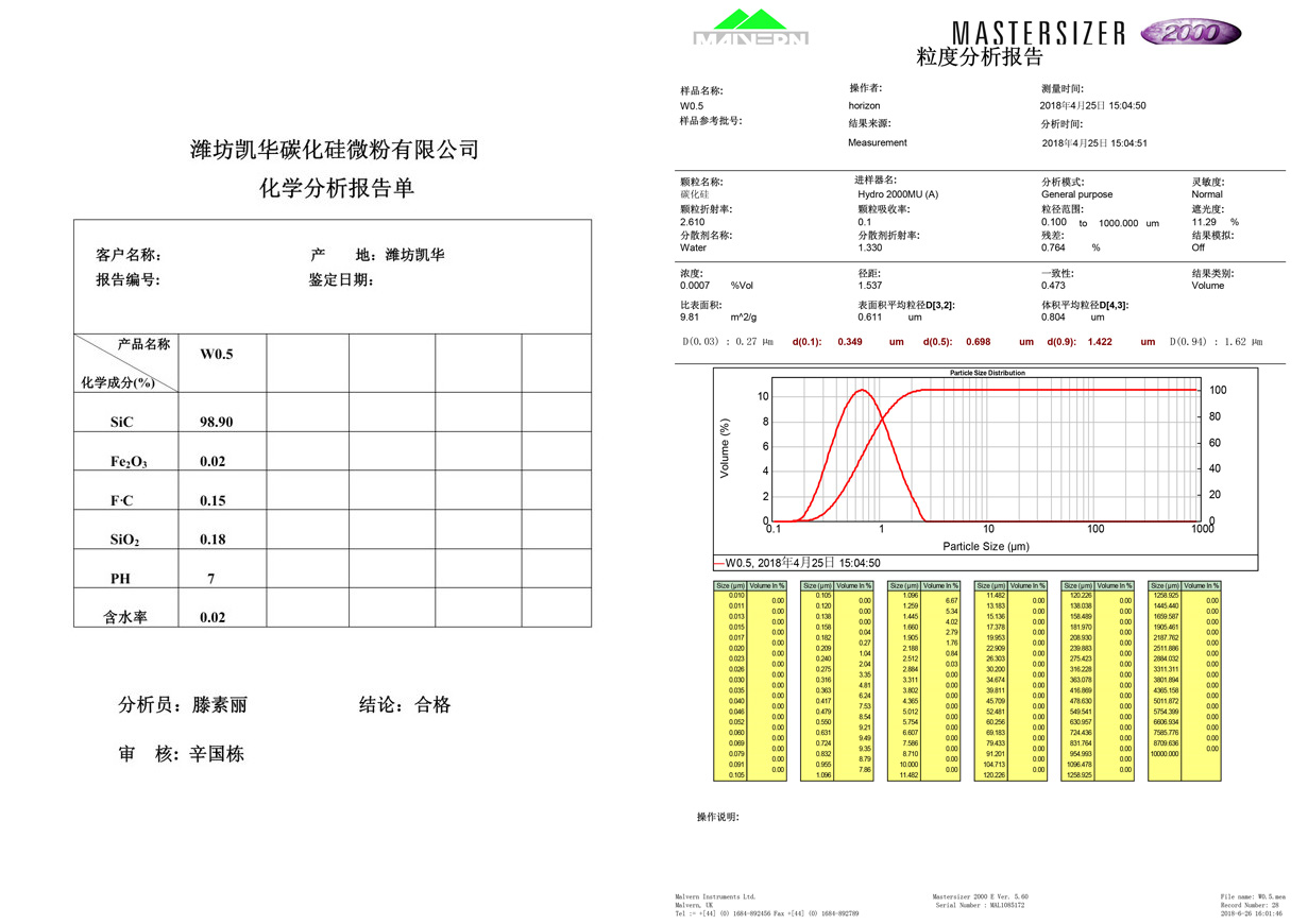 W0.5微粉選用優質高純碳化硅原料,經濕法研磨而成,其粒度分布窄、流動性好、固含量高 、收縮率低、燒結密度大等顯著優勢,并以獨特的低溫干燥技術,有效控制了粉體氧含量,產品暢銷日本及歐洲市場。廣泛用于機械密封、防彈裝甲、石油化工、航空航天等領域。